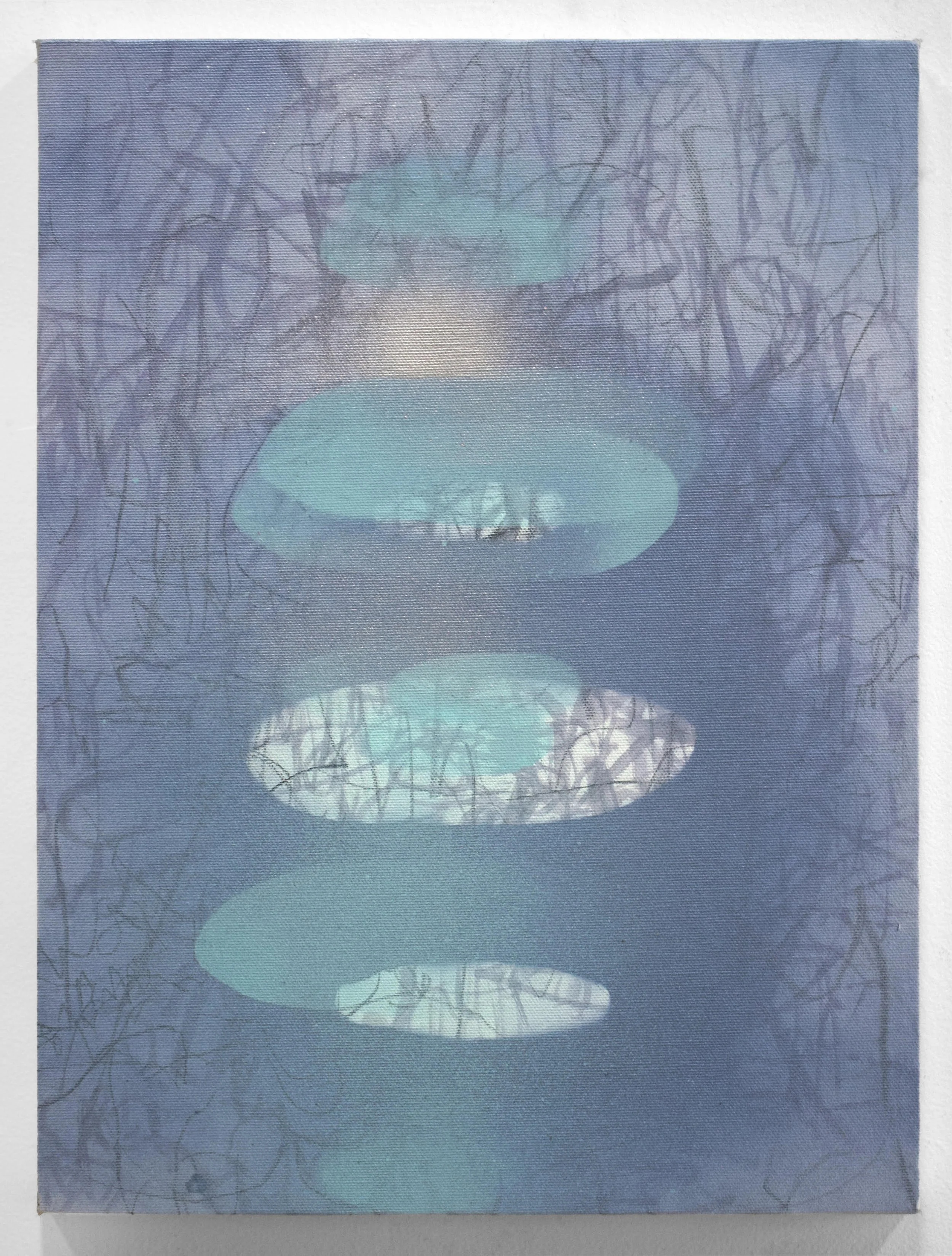 Integrating paint, textiles, sound, sunlight and water, my work translates vibration and consciousness into material form. Rooted in contemplative practice, these paintings and installations evolve from silence, capturing the unseen through light, color, and resonance—echoing ancient mantras and water's responsiveness to human intention and energetic presence.