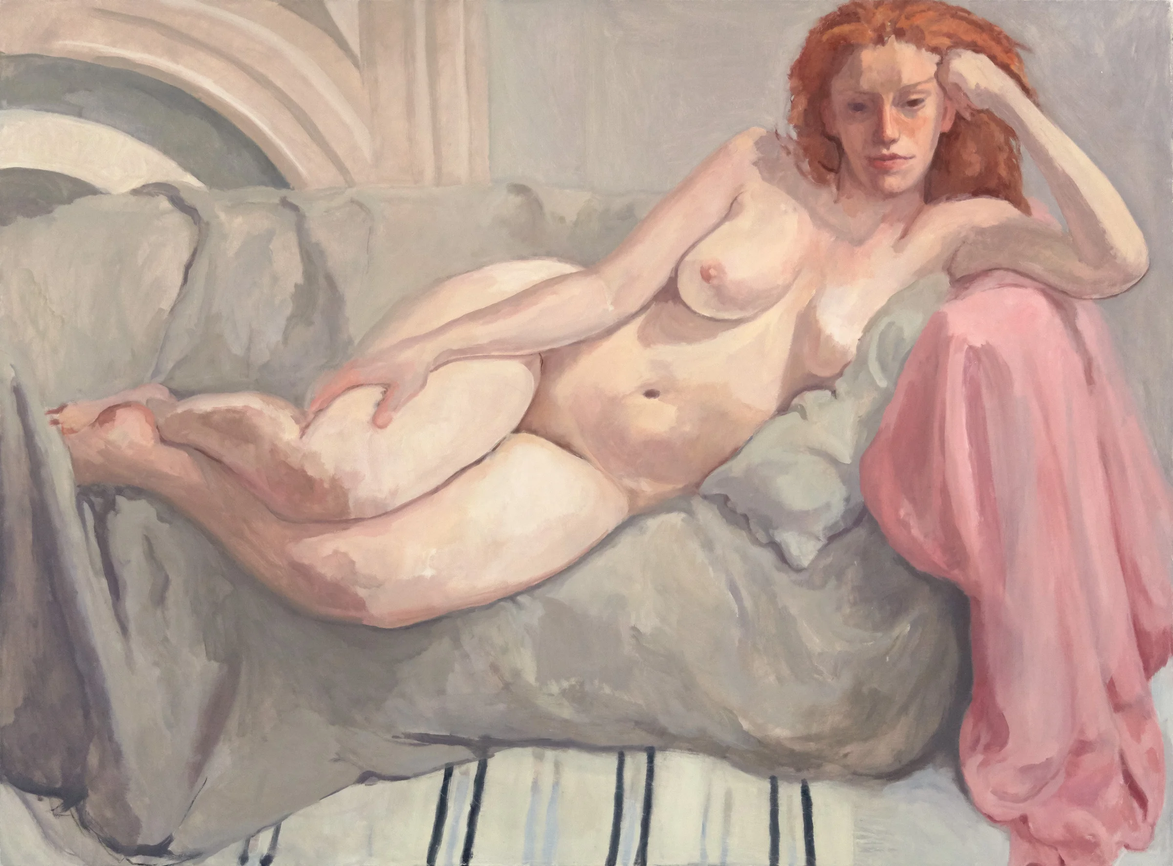 The Painting Center is pleased to present Alix Bailey: Recent Paintings in the Main Gallery & Project Room. The mostly large figure paintings are a departure from Alix Bailey’s last show of small heads and self portraits at The Painting Center. This newer work is inspired, in part, by a move to a new studio in her Manhattan apartment where the diffused natural light and marble mantle have become an essential part of her current motif. Still propelled by the thrill of the process of working closely from life, she has become increasingly interested in finding a balance between what is invented in response to direct observation and what is invented on the canvas. Alix Bailey has shown her work in New York City, Connecticut and Italy.