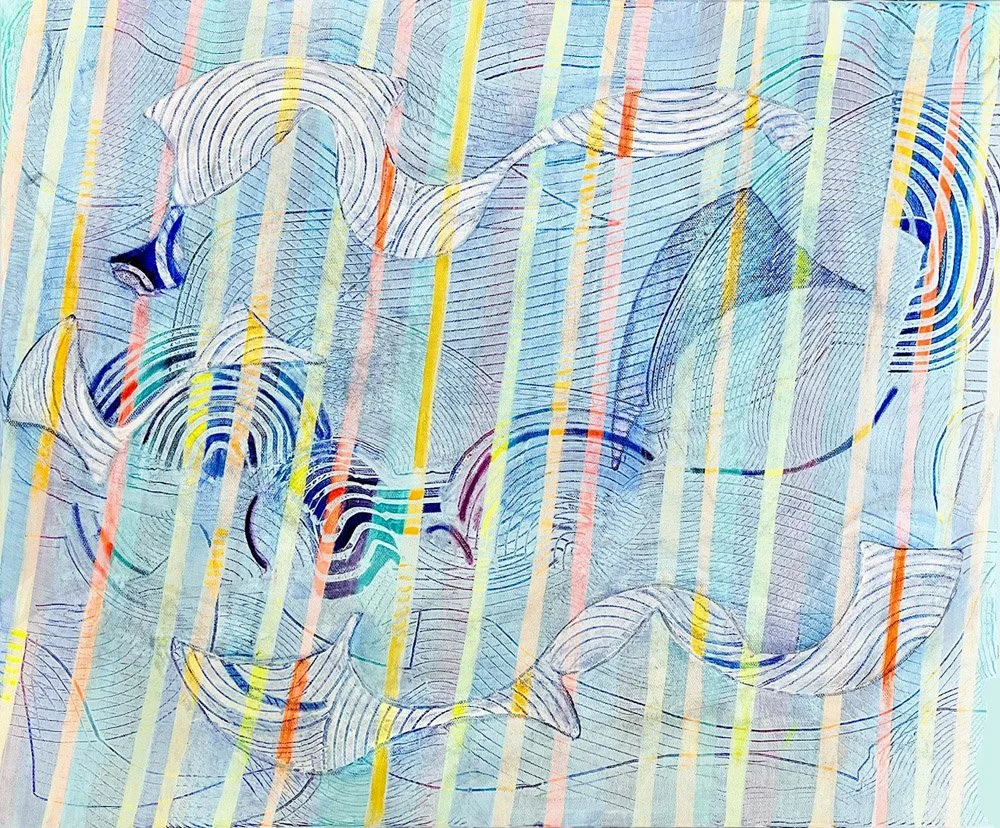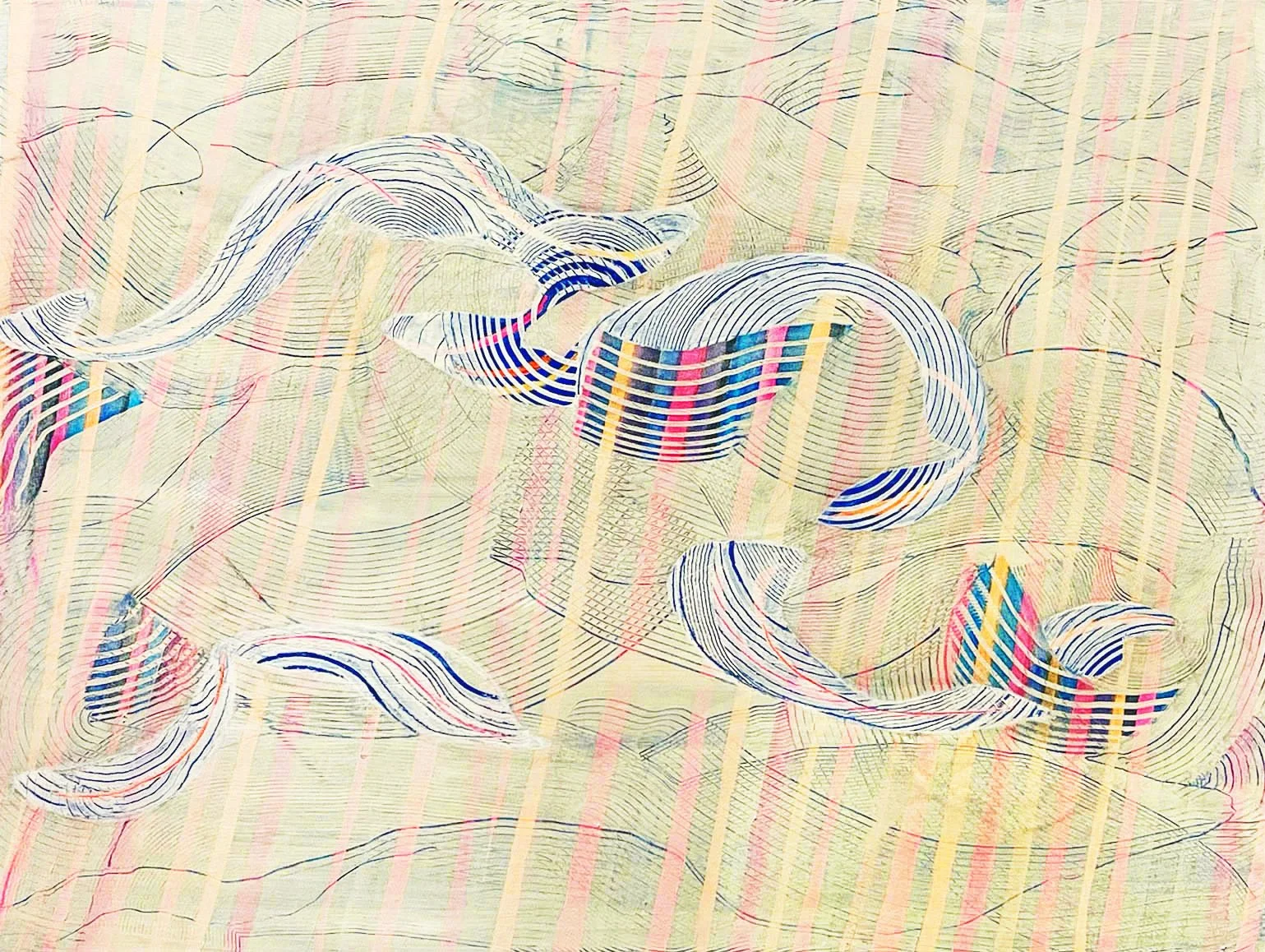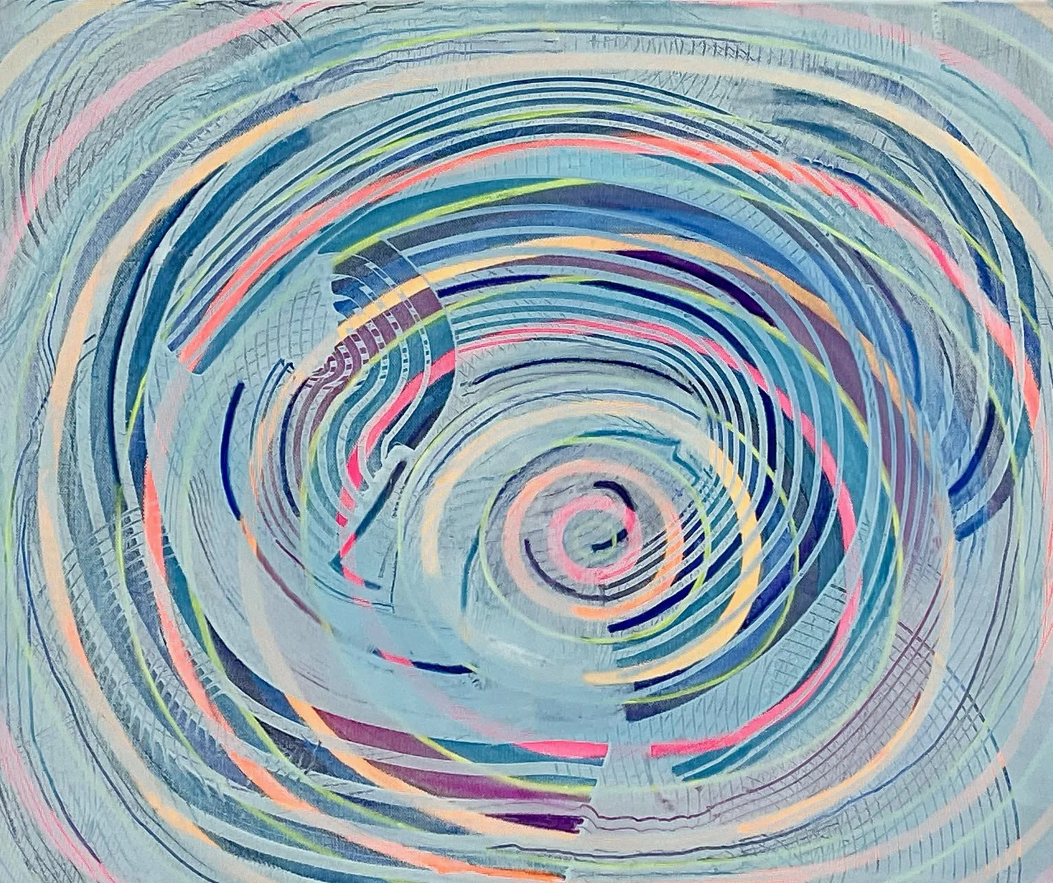 “In my recent paintings I am engaged in bringing the instinctive, immediate, and improvisational qualities of drawing to the process of painting. With various tools I draw into my paint, spontaneously creating a layered, linear matrix. The biomorphic forms that emerge show the traces of their evolution.”