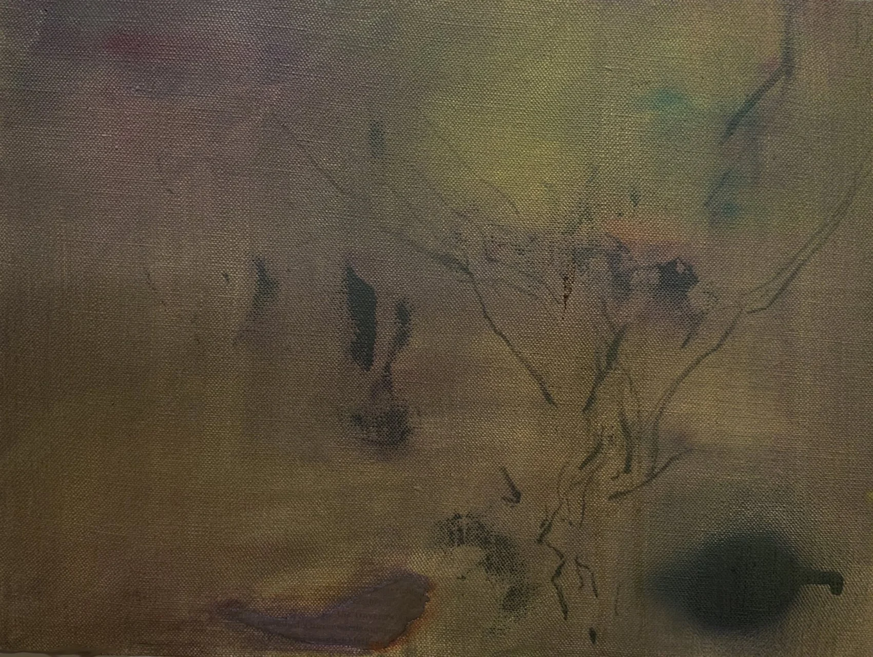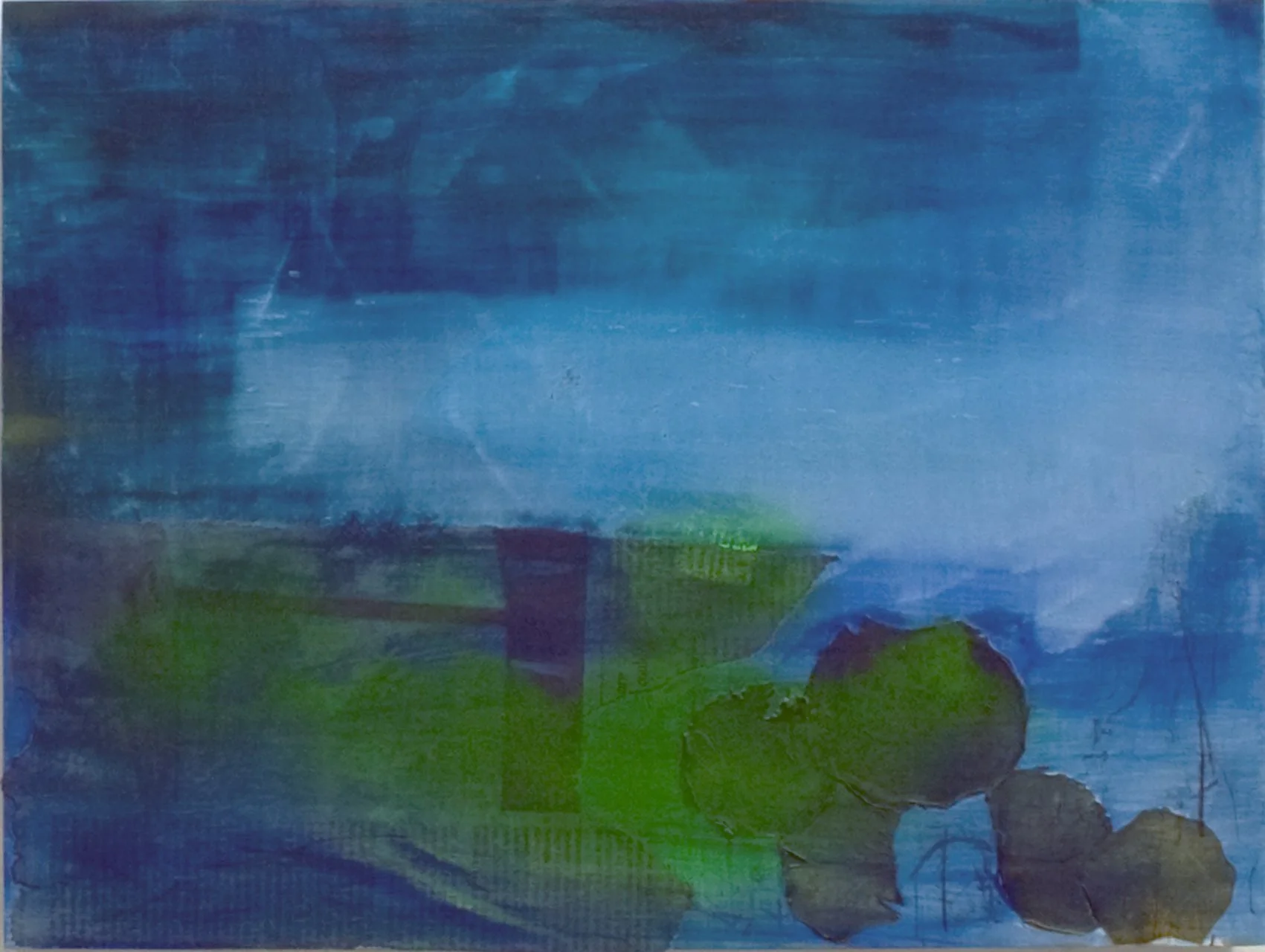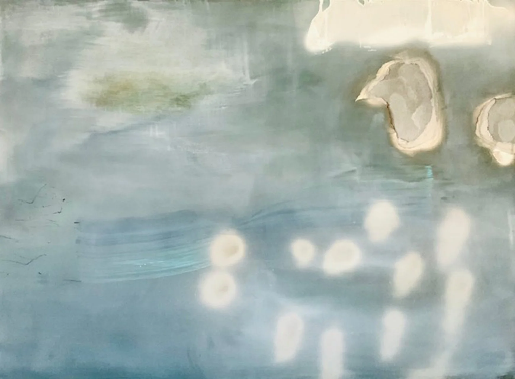 You are looking at pieces layered with charcoal, oil paint and enamel. Originating from observed repetitive patterns, atmosphere. Sea and sky filtered through the painter's subjective experience. Overlapping fields of color and form express layers of memory-emotion-desire gathered through the passage of time.