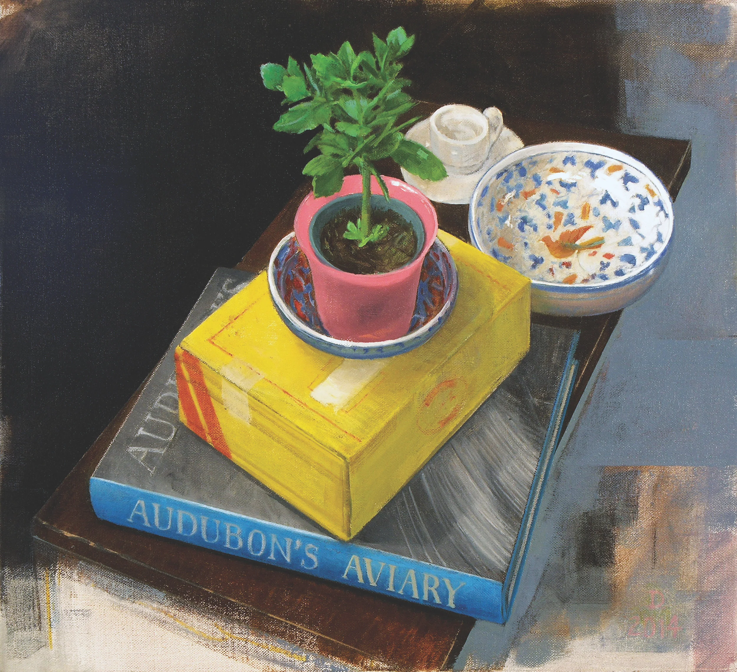 The title for the show comes from the Voltaire novel Candide (1759) and refers to the idea of taking care of one’s own needs before taking care of others’. The idea of connecting to nature despite the cacophony of the world around us seems apt at this moment in history. Curators Patricia Spergel and Shazzi Thomas selected artists for this exhibition who reference garden and landscape in their work in a variety of ways – traditional observational painting, works with subtle satirical and political commentary and paintings that lean towards abstraction. What all these paintings have in common is a love for nature and paint, and a clear, focused approach to transmitting that passion.