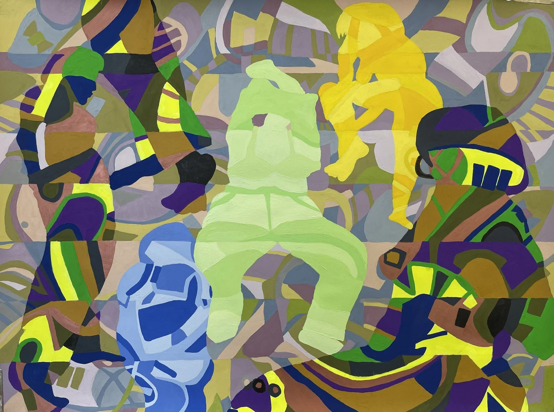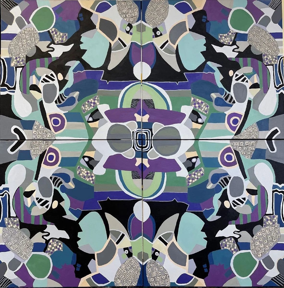Ellen Gordon is a Stamford, CT based artist. She holds an undergraduate degree from Boston University and a master’s degree from Baruch College, NYC. She has exhibited regionally, is the recipient of many awards and grants. Additionally, Ms. Gordon has taught art programs for art lovers of all ages. In 2022 she became the curator for the City of Stamford’s Mayor’s Art Gallery in Government Center. The colors and patterns in Ellen Gordon's artwork are roller coaster rhythms of fences, grids, and fractured geometries– a kind of mapping. She guides us along a journey of the personal narrative through landscaped layers of abstraction and portraiture. Playful and speculative, the rhythms remain determinedly open-ended and essentially borderless. An un-plotted story with unbounded possibilities. Over the past two decades, Gordon’s work has evolved through many phases, but her main body of work centers on figurative collages- intimate yet colorful portrayals of a woman in her own thoughts, providing the viewer a window into honest moments with a series of striking and bold women. Her most recent work has been a transition into the abstract patterns, experimenting with geometric shapes and inverted forms in color palettes evoking various states of mind.
