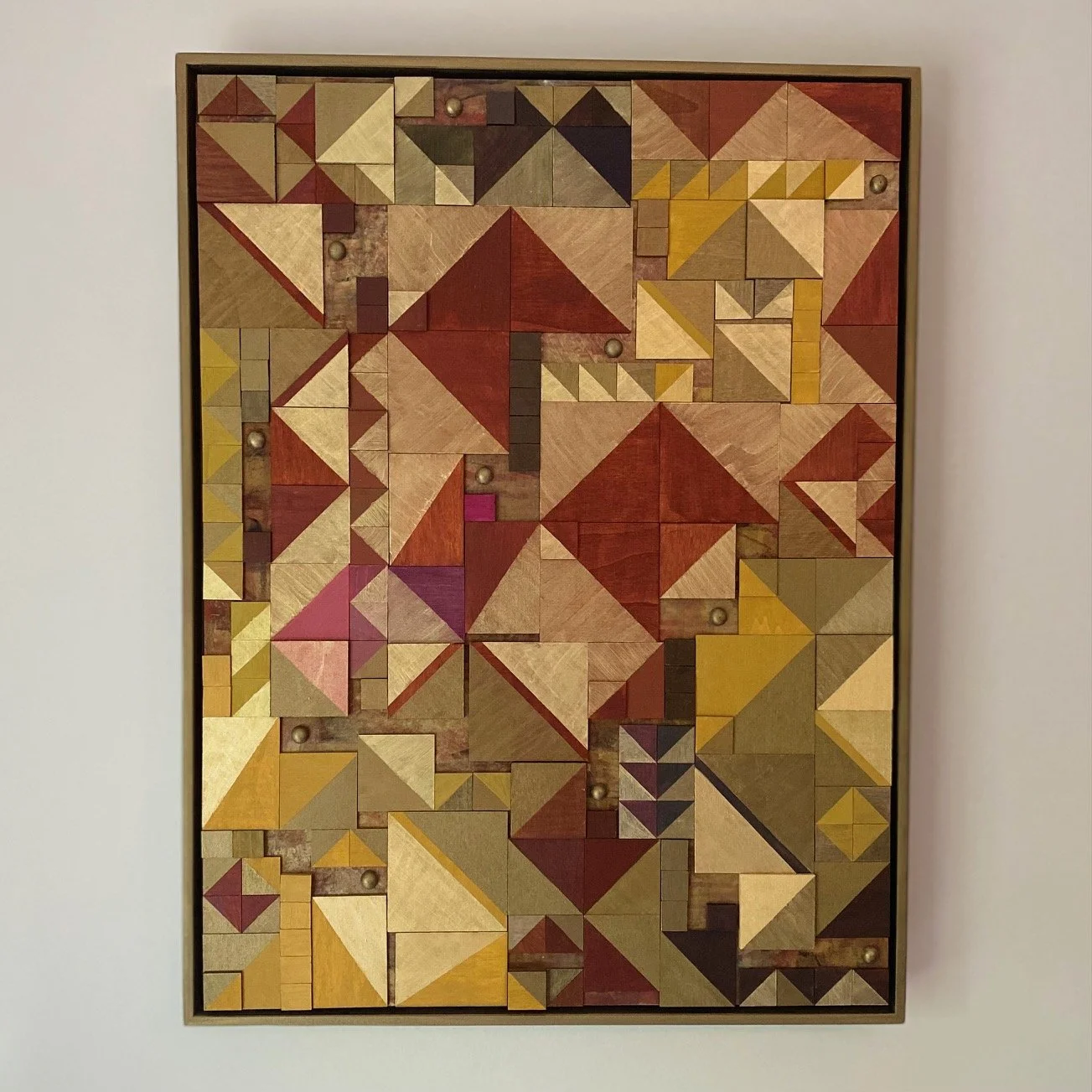 My work examines the relationship between structure and stillness. Layered wood, paper and acrylic are organized into deliberate compositions that explore balance, restraint and quiet order. Geometry becomes a framework for reflection rather than control.