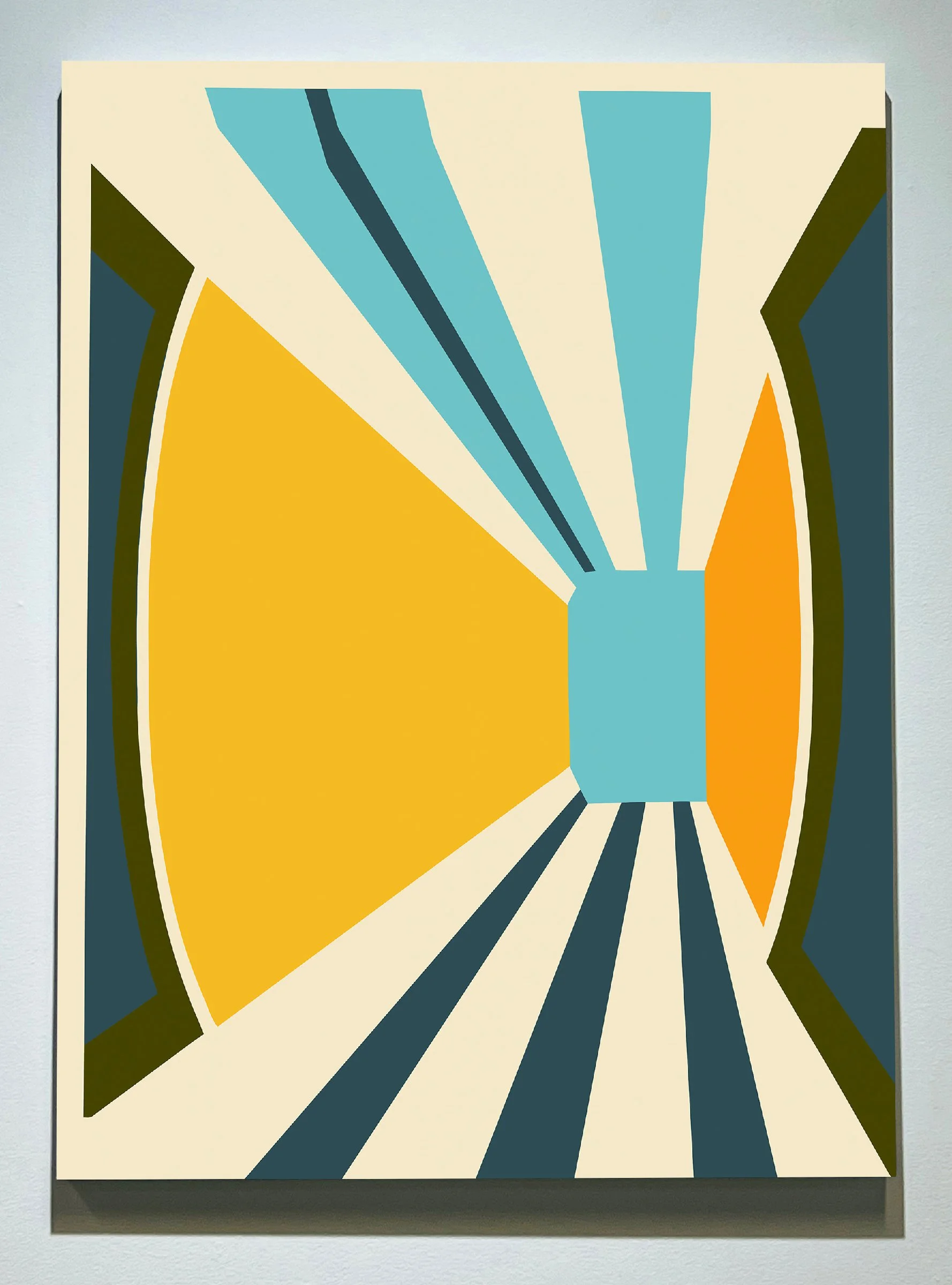 My paintings explore how attention functions in an information-drenched, media-saturated society. Operating where accelerating visual intake meets diminishing attention spans, the works combine the intended immediacy of late-modernist abstraction with the tabbed quick-read space of contemporary iconography, rewarding both rapid glances and sustained looking through layered structure and spatial tension.