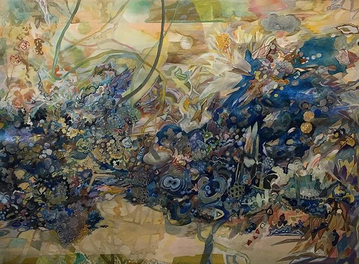 Through the lens of the natural—the bombardment of technological advances and scientific imagery in daily life has affected my understanding of self and place in the natural world. Looking toward the macro and micro worlds one sees organizing principles, processes, and patterns that mirror or question the human/nature relationship.