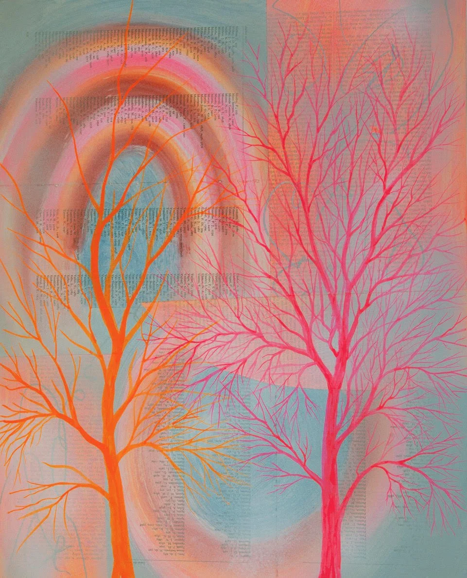 My work explores abstract landscapes inspired by New Mexico's forests, emphasizing trees' resilience. I blend oil, acrylic, spray paint, and found materials to create layered textures that capture fleeting light, color, and emotion. Through this, I reveal nature's complex beauty and enduring strength beyond traditional landscapes.