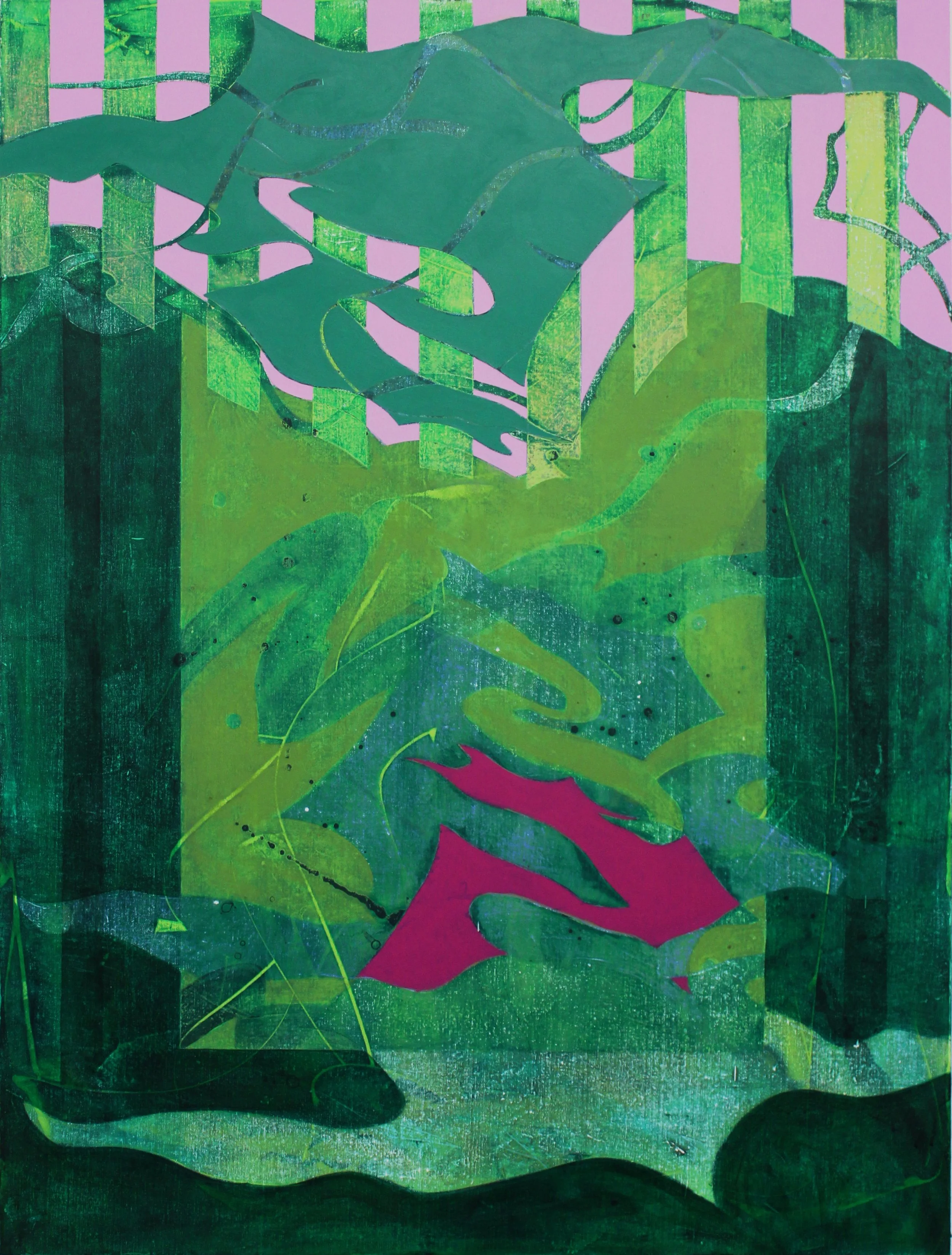I am exhausting a spark, taking an idea and exploring it fully. In resolving a painting, I am letting it finally rest. One image is a commitment, but a painting is devotion to the passage of time. I am wearing my dissonance thin. I am building an x-rayed, crystal clear, thick patina of explored potential. Painting without representation, I am filling in the gaps left by my own vulnerability. Both visually and physically, my work shows an archive of decisions, compromises, gambles, and methods to work beyond an initial concept. The work is permissive, a radical means to imagine possibility.