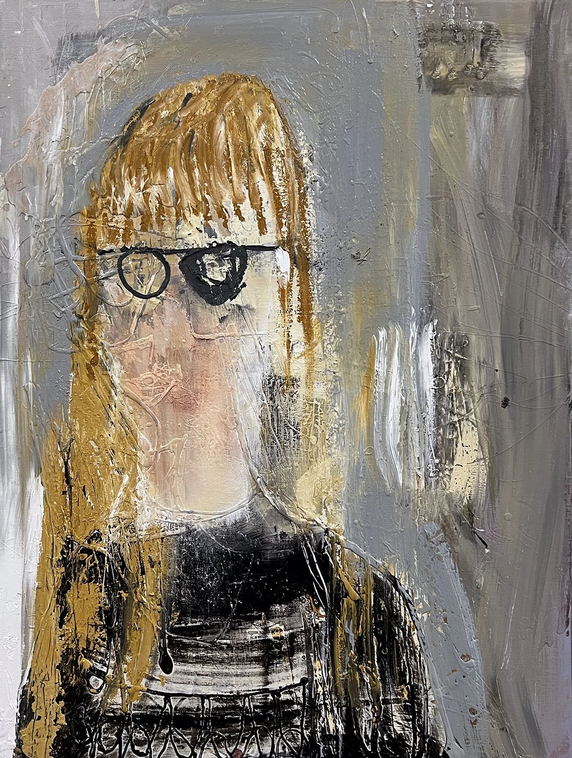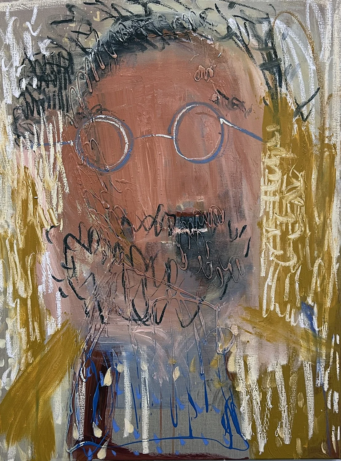 Mashed cigarettes crushed by a thousand heels, shreds of tobacco peering out of the slimmest of papers. How many mouths do they convey? Quick puffs by the side of the road, waiting for the bus, or fully smoked to calm a rapidly beating heart, more afraid of humans than nicotine. Detritus of anxiety, there for a moment, blown aside, soaked, melted away…Seen by an artist’s eye, saluted by their hands. Framed and re-framed, analogue slates of a movie set moving across the city. Looking down, cataloguing the progress of the apprehensive, their unread urban smoke signals. Absence is telling here, layering stubs with imagined bodies, invisible lips, stained hands. Icons of people who have already left. But then a sudden shift to Presence - Great heads of the real, encountered across the metropolitan sprawl. Their geographies stretching around the globe in ropes, bridging divides: Italy — China, Ukraine — Bangladesh, Chile — Niger, Morocco — Poland. Visible but not recognizable, just in case…A halo of hair, spectacular spectacles, the slope of a head, arc of a nose. People captured in loose lines and colours but not netted. Free to walk off the canvas, live lives in this city of layers, built over millennia by natives and incomers. Languages collide and blend, are absorbed as dress, custom, religion, desire, intersectional identities, like the area grids meeting, directing you west or east, north or south, up or down. Or the beams from both river and ocean bathing the space in silver and shadow, bright and blurred, running tracts of luminescence over the island and beyond. Just as the tide comes in and out, so do its citizens, always have, always will do. If that stops, the city will keel over, as a tired old man losing the will to live!