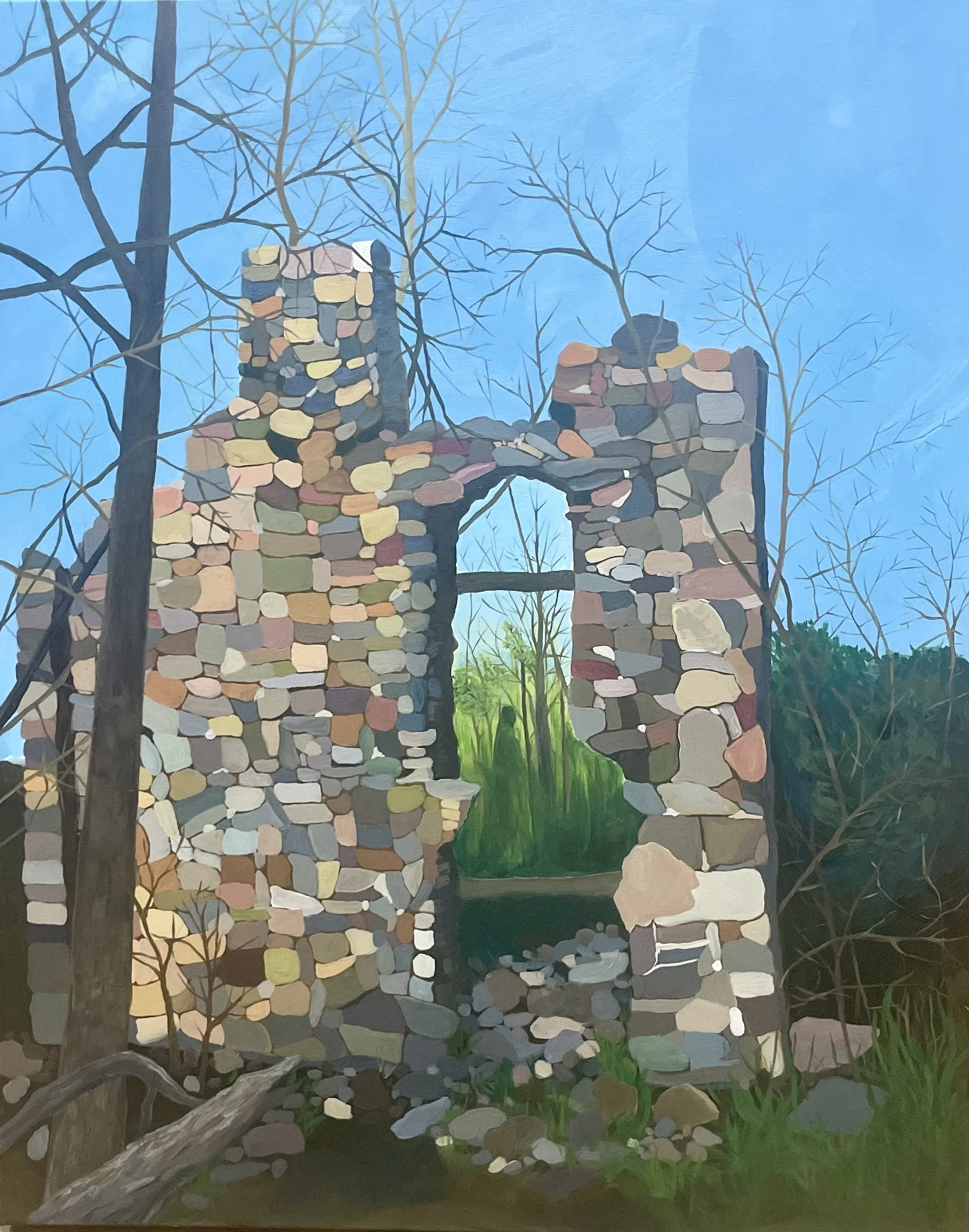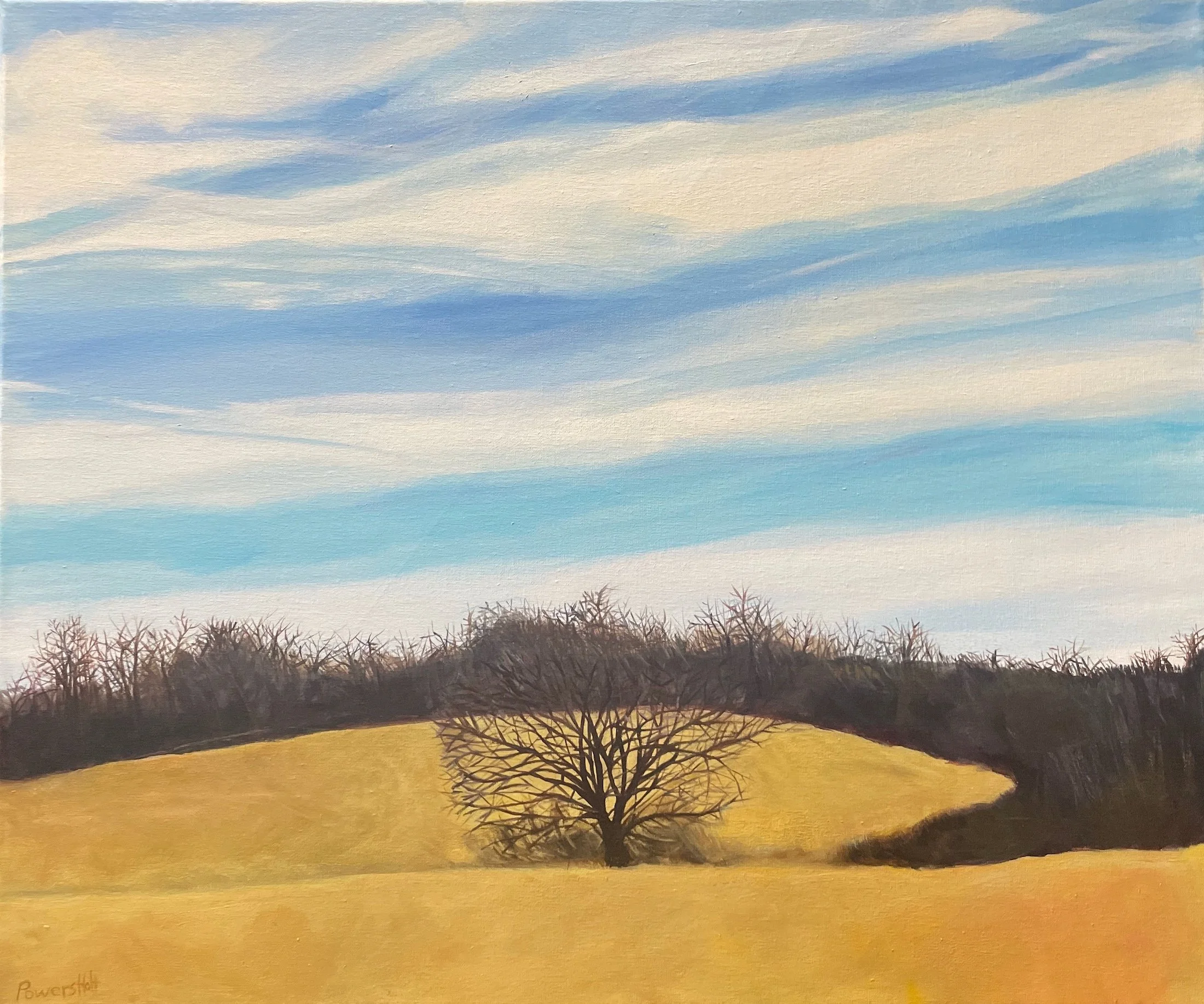 I am inspired by patterns in nature and atmospheric colors in the sky. My paintings describe a solitary discovery of place and how the same view is modified with repeated observation and captures the passage of time.