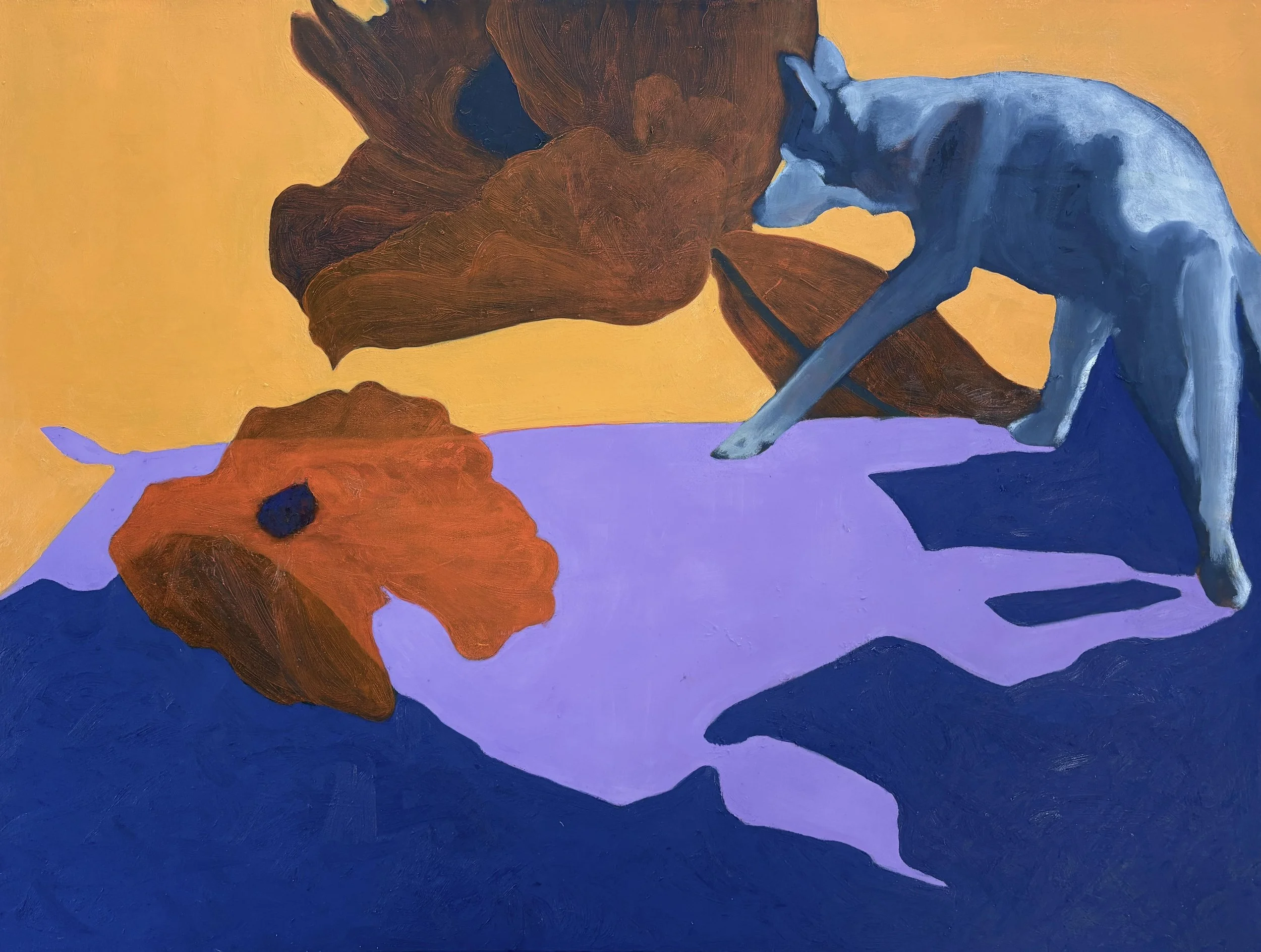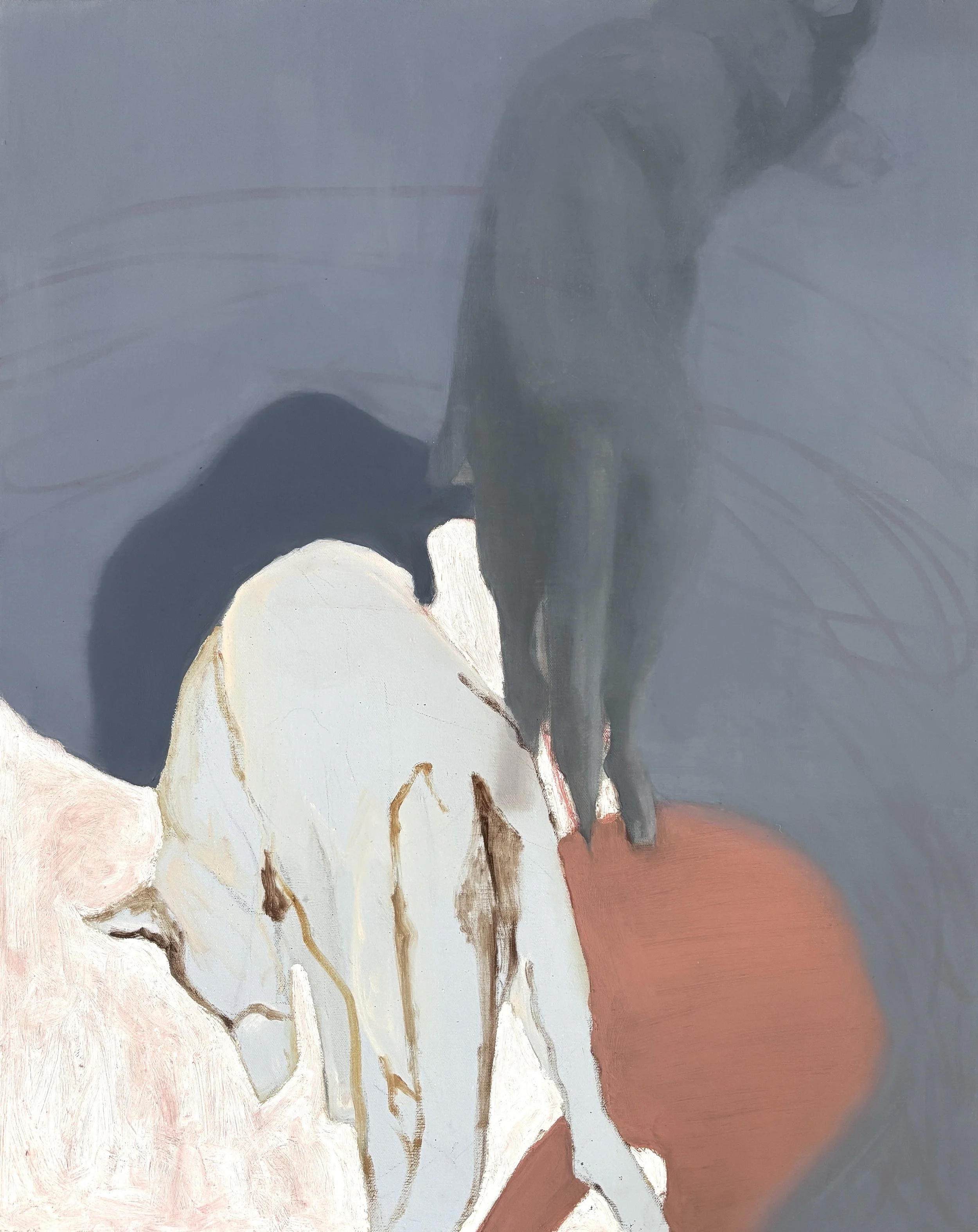 I make representational oil paintings exploring themes of identity and displacement. My pared back compositions and varied paint application build an underlying psychological narrative. By focusing on individual subjects, along with cropping, gesture, and shadow, I leave parts of the painting unresolved, allowing solitude and quiet tension to emerge.