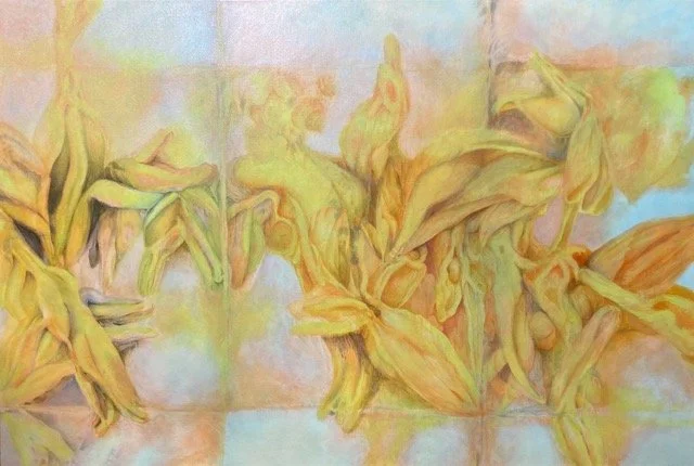 “Intrigued by how we perceive truth and use data to support our viewpoints, I begin with raw data from nature. When pressed onto my picture plane, these elements express themselves and are my starting point. Lines/shapes/forms/colors/textures direct my actions and reflect the unique truth, logic, and beauty that I see.”